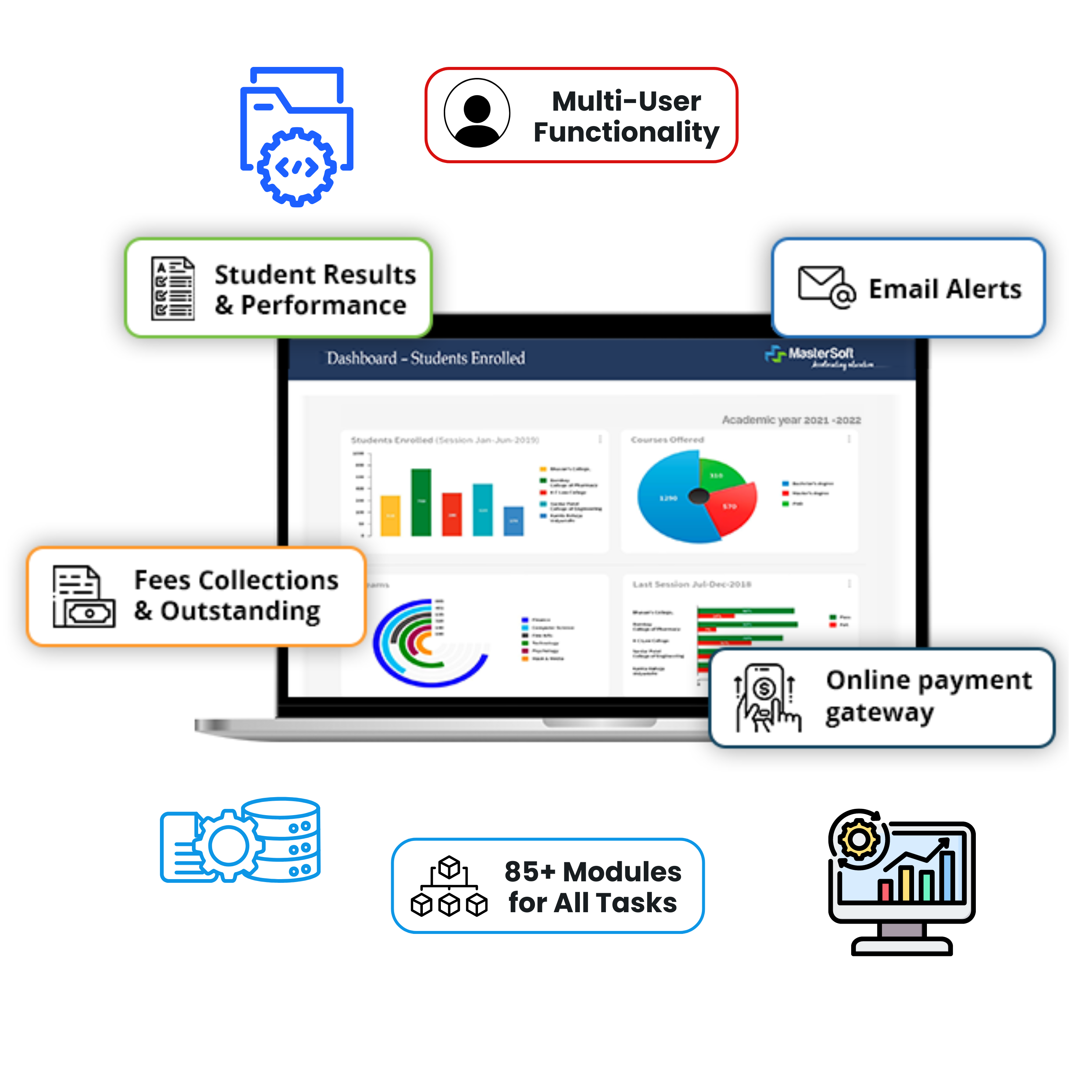 For your Backend & School tasks, We develop and connect tools such as Mobile App, Website, ERP for management.